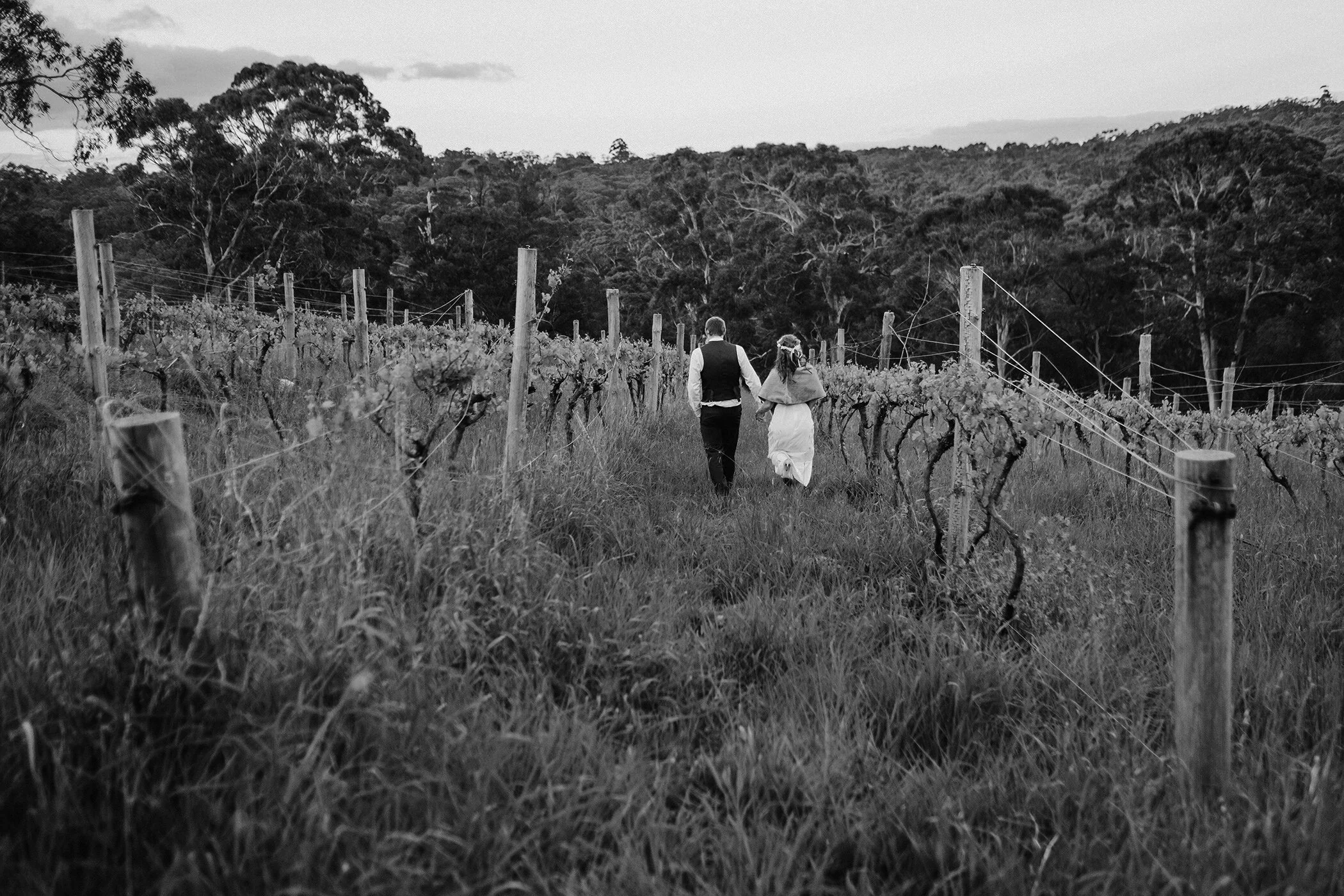 We have teamed up with the gorgeous Sue & Sean of Sinclair’s Gully to offer a special and beautiful place to elope with our 2 hour week-day Elopement Package. With access to their candlebark forest, natural scrub and biodynamic hill-top vineyard for your ceremony, portraits and a chance to relax with a bottle of their delicious bubbly outdoors under the veranda. Our photo ninja Sarah got married here herself, and can’t speak more highly of them. Located just 15 minutes from Magill at Norton Summit. Sue and Sean are also more than happy to witness for no additional fee. xo